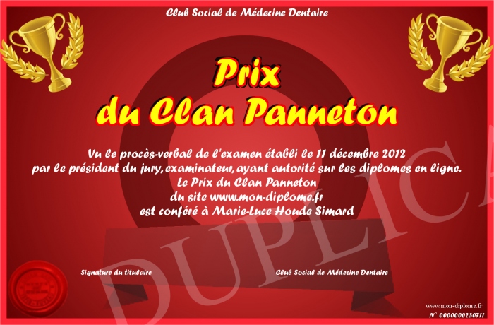 Envoyez par email votre Prix du Clan Panneton personalisé