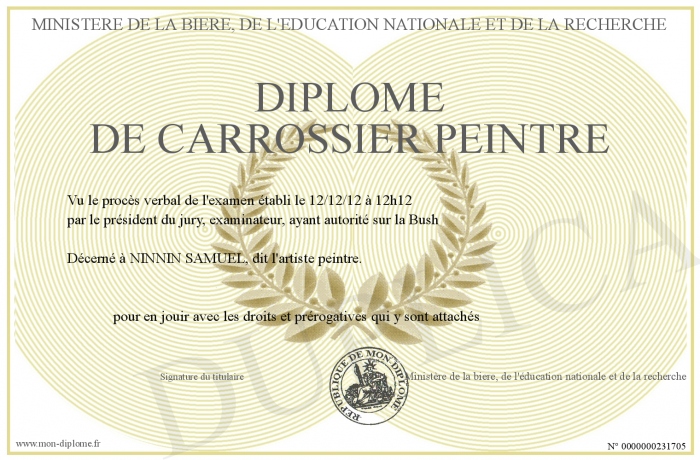 Envoyez par email votre Diplôme de Carrossier Peintre personalisé