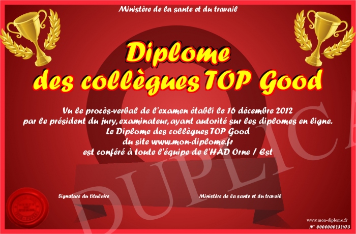 Envoyez par email votre Diplôme des collègues TOP Good personalisé