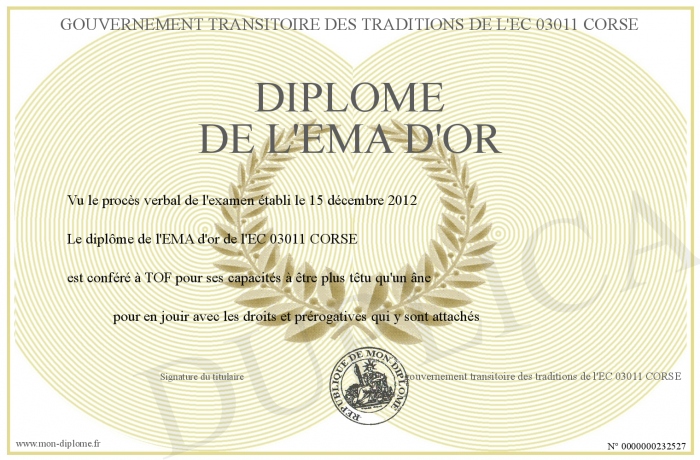Envoyez par email votre Diplôme de l'EMA d'or personalisé