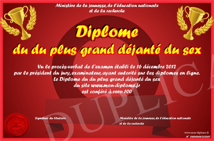 Envoyez par email votre Diplôme du du plus grand déjanté du sex personalisé