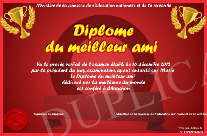 Envoyez par email votre Diplôme du meilleur ami personalisé