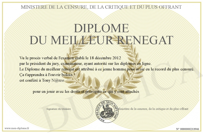 envoyé par le Ministère de la censure, de la critique et du plus offrant !