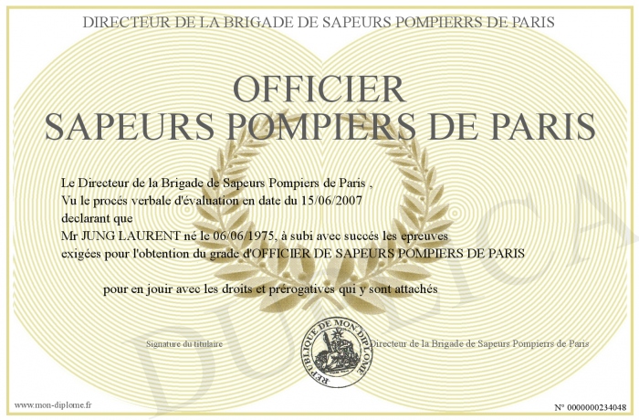 Envoyez par email votre OFFICIER SAPEURS POMPIERS DE PARIS personalisé
