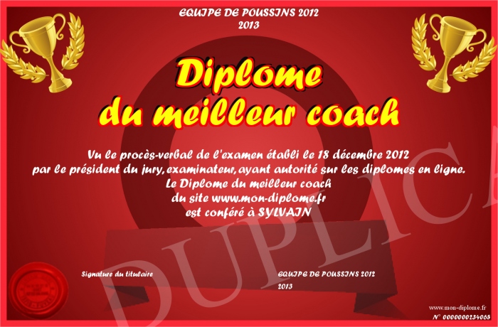 Envoyez par email votre Diplome du meilleur coach personalisé