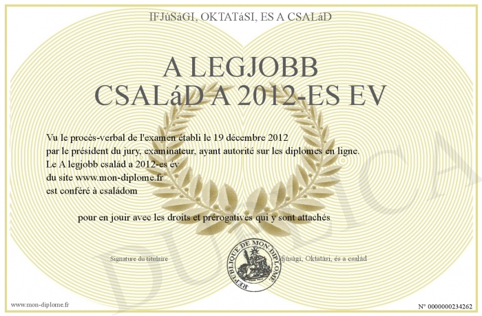 Envoyez par email votre A legjobb család a 2012-es év personalisé