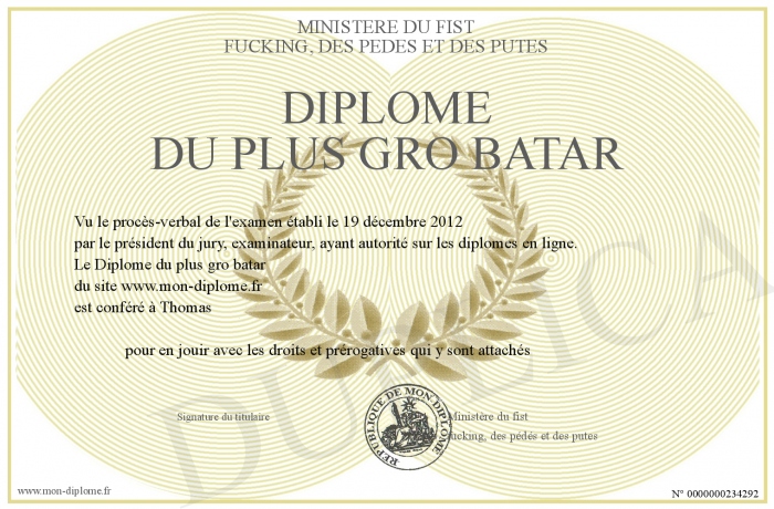 Envoyez par email votre Diplôme du plus gro batar personalisé