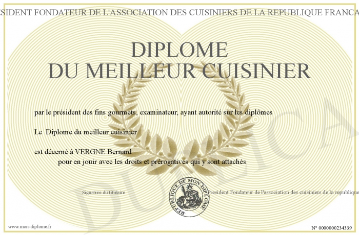 Envoyez par email votre Diplôme du meilleur cuisinier personalisé