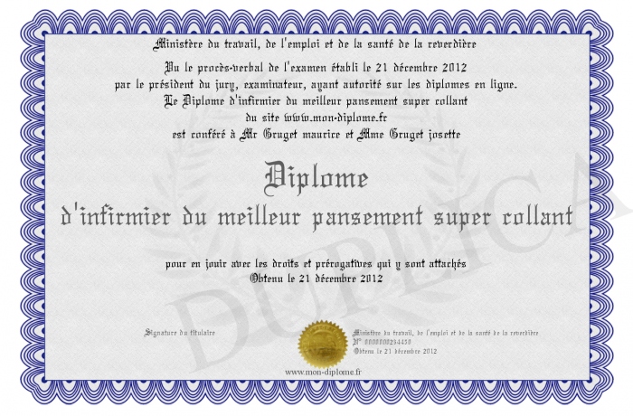 Envoyez par email votre Diplome d'infirmier du meilleur pansement super collant personalisé