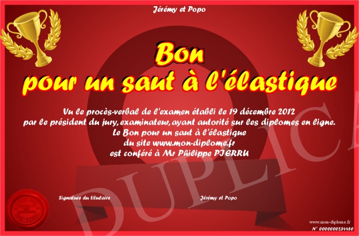 Envoyez par email votre Bon pour un saut à l'élastique personalisé