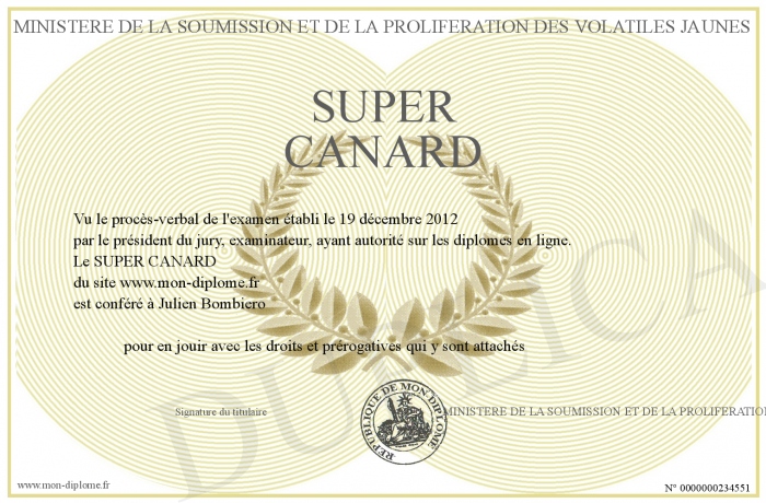 envoyé par le MINISTERE DE LA SOUMISSION ET DE LA PROLIFERATION DES VOLATILES JAUNES !
