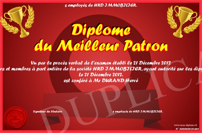 Envoyez par email votre Diplôme du Meilleur Patron personalisé