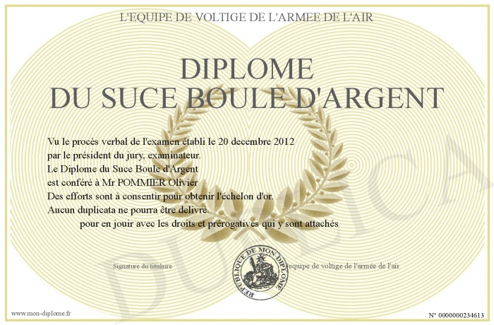 Envoyez par email votre Diplôme du Suce Boule d'Argent personalisé