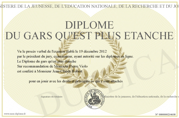 Envoyez par email votre Diplôme du gars qu'est plus étanche personalisé