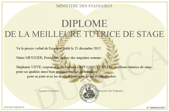Envoyez par email votre Diplôme de la meilleure tutrice de stage personalisé