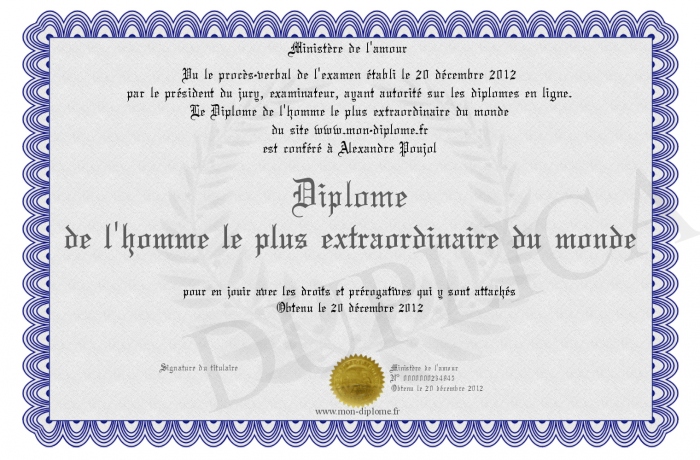 Envoyez par email votre Diplôme de l'homme le plus extraordinaire du monde personalisé