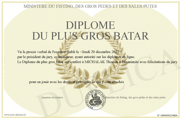Envoyez par email votre Diplôme du plus gros batar personalisé