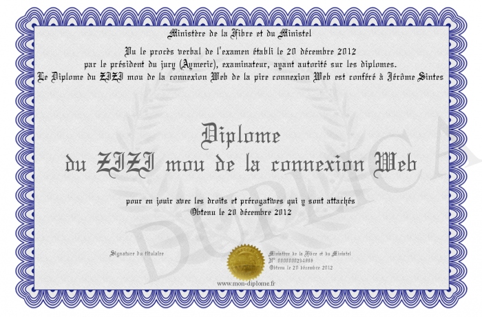 Envoyez par email votre Diplôme du ZIZI mou de la connexion Web personalisé
