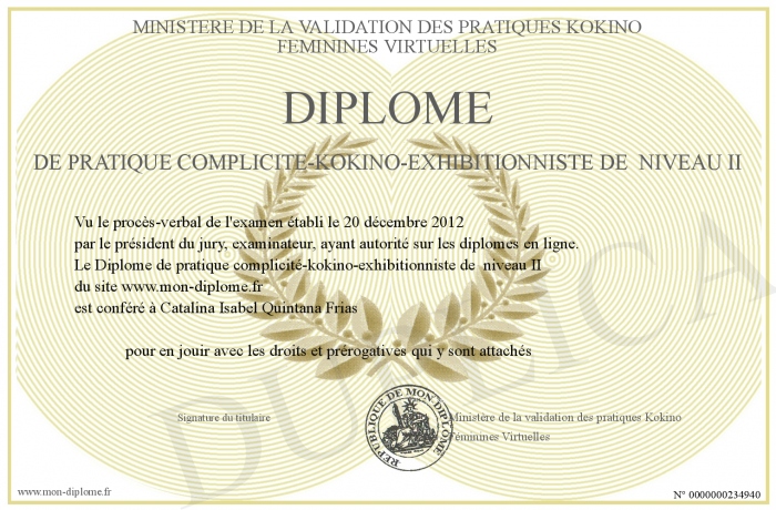 Envoyez par email votre Diplôme de pratique complicité-kokino-exhibitionniste de niveau II personalisé