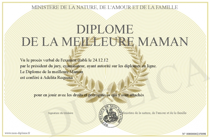 Envoyez par email votre Diplome de la meilleure Maman personalisé