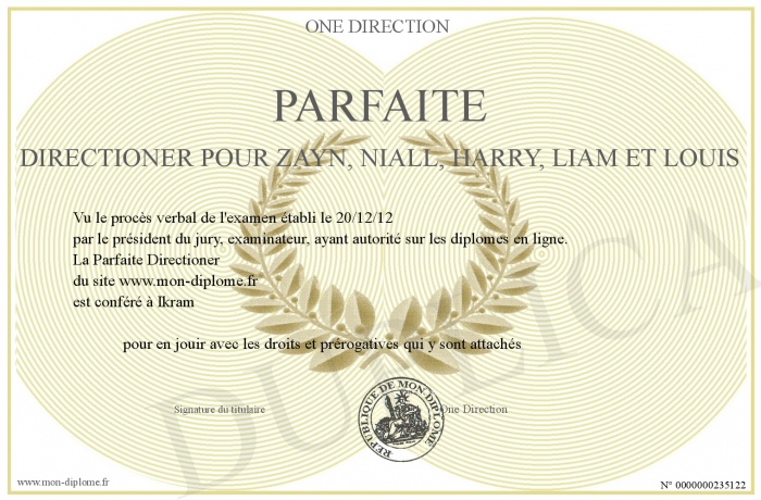 Envoyez par email votre parfaite Directioner pour Zayn, Niall, Harry, Liam et Louis personalisé