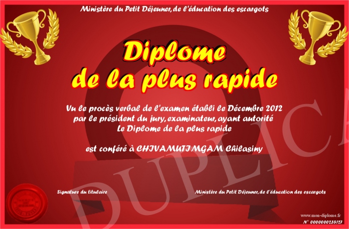 Envoyez par email votre Diplôme de la plus rapide personalisé