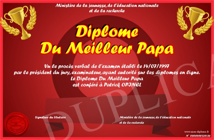 Envoyez par email votre Diplôme Du Meilleur Papa personalisé