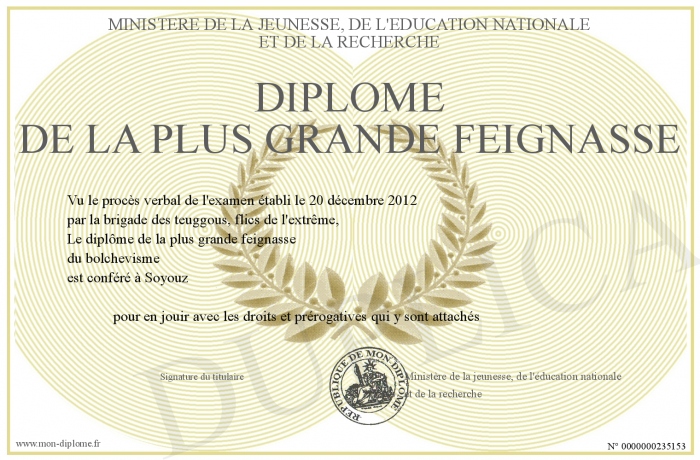 Envoyez par email votre Diplôme de la plus grande feignasse personalisé