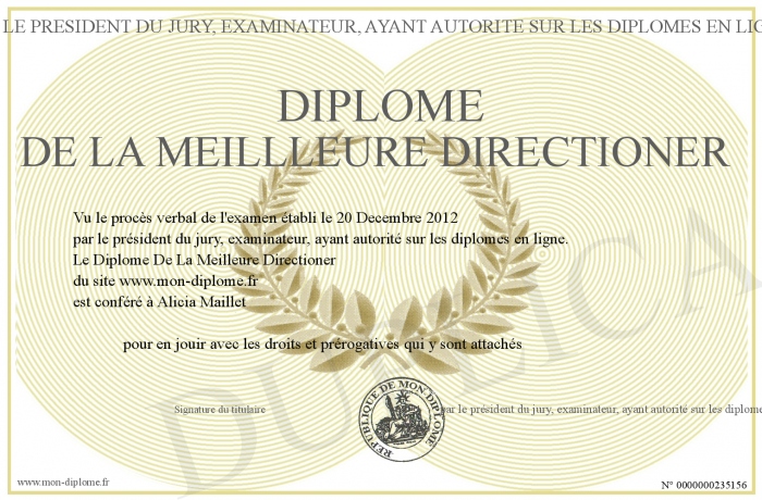Envoyez par email votre Diplôme De La Meillleure Directioner personalisé