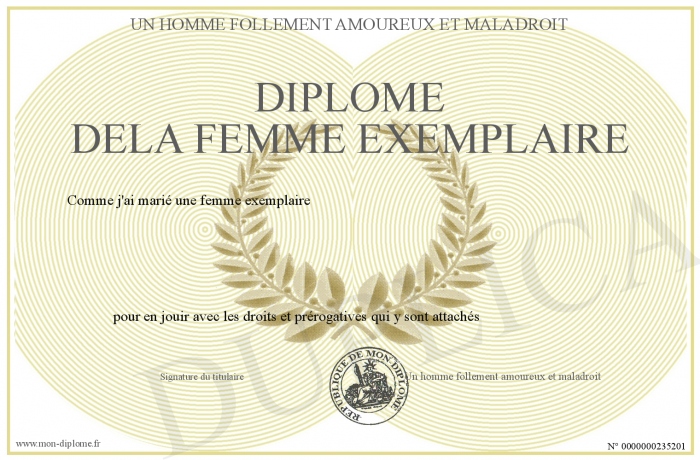 Envoyez par email votre Diplome dela femme exemplaire personalisé