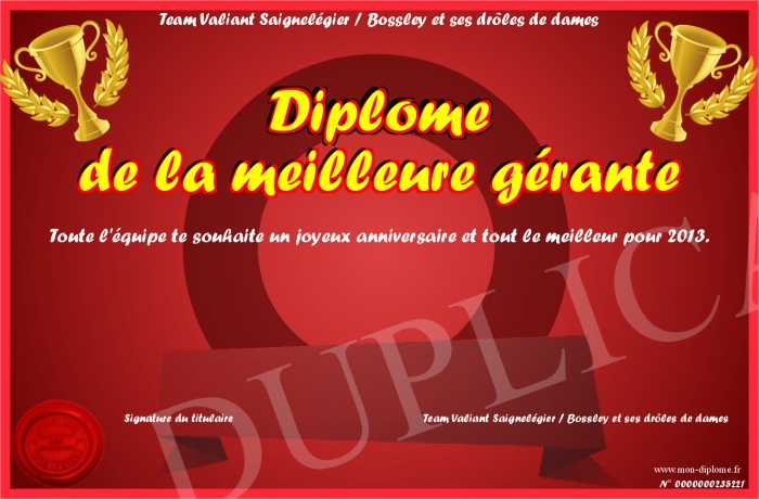 Envoyez par email votre Diplôme de la meilleure gérante personalisé