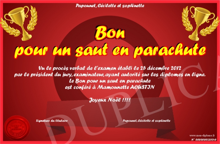 Envoyez par email votre Bon pour un saut en parachute personalisé