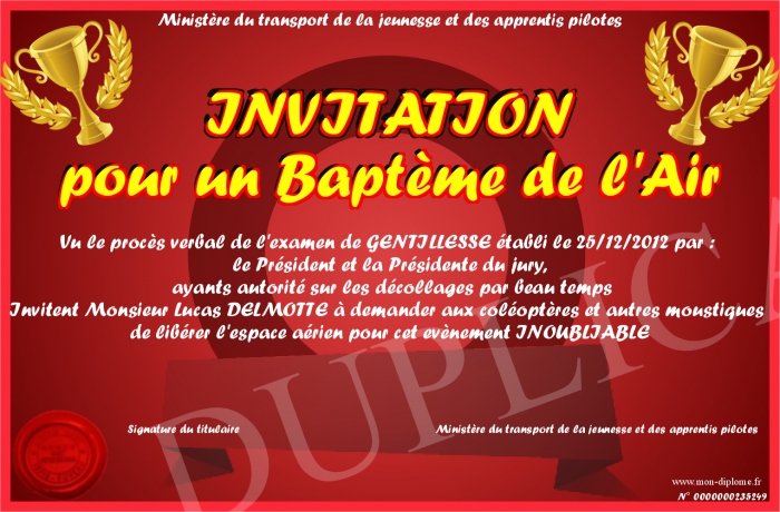 Envoyez par email votre INVITATION pour un Baptème de l'Air personalisé