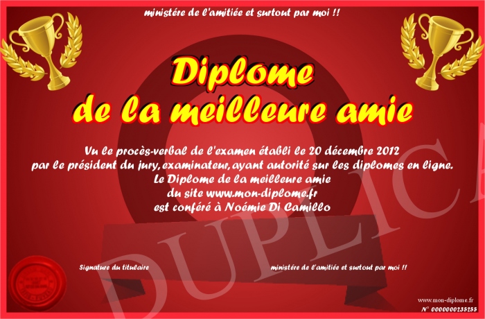 Envoyez par email votre Diplôme de la meilleure amie personalisé