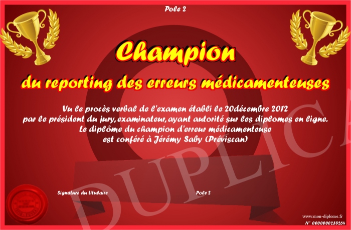 Envoyez par email votre Champion du reporting des erreurs médicamenteuses personalisé