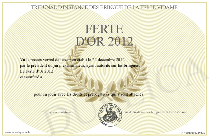 Envoyez par email votre Ferté d'Or 2012 personalisé