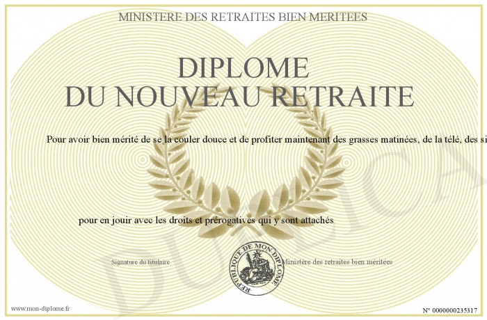 Envoyez par email votre Diplôme du nouveau retraité personalisé