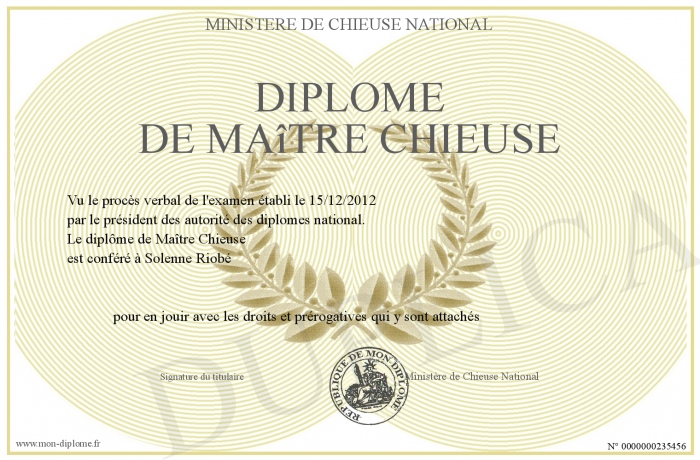Envoyez par email votre Diplôme de Maître Chieuse personalisé