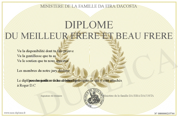 Envoyez par email votre Diplôme du meilleur frère et beau frère personalisé