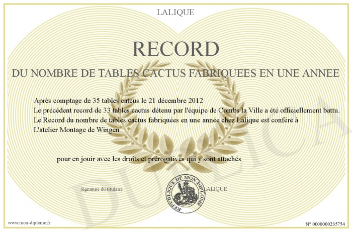 Envoyez par email votre Record du nombre de tables cactus fabriquées en une année personalisé