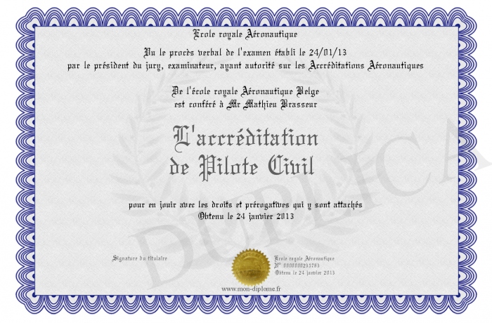 Envoyez par email votre L'accréditation de Pilote Civil personalisé