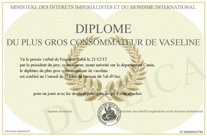 Envoyez par email votre Diplôme du plus gros consommateur de vaseline personalisé