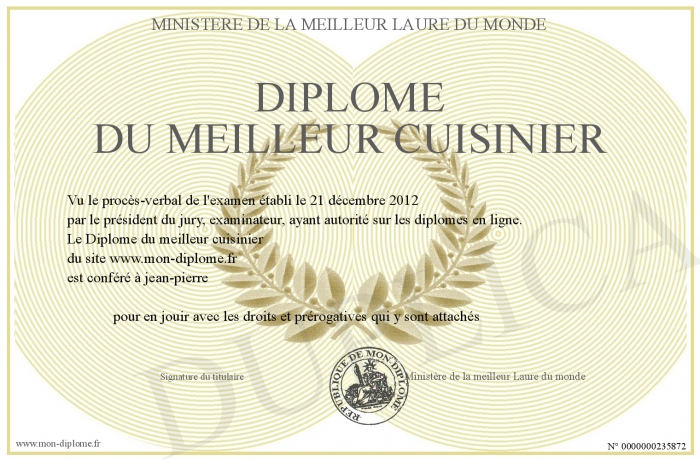 Envoyez par email votre Diplôme du meilleur cuisinier personalisé
