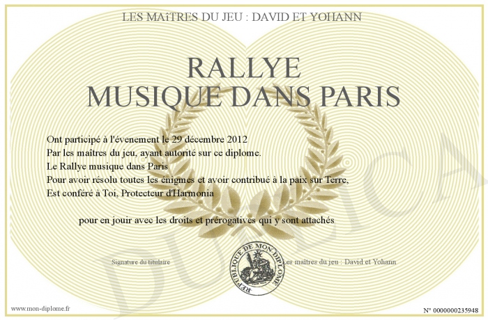 Envoyez par email votre Rallye musique dans Paris personalisé