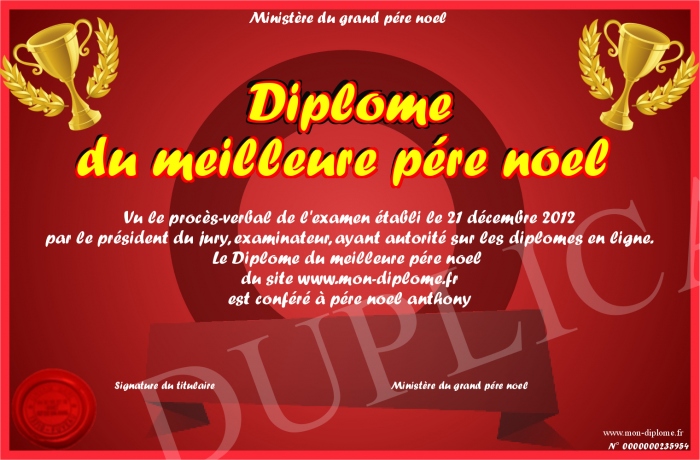 Envoyez par email votre Diplome du meilleure pére noel personalisé