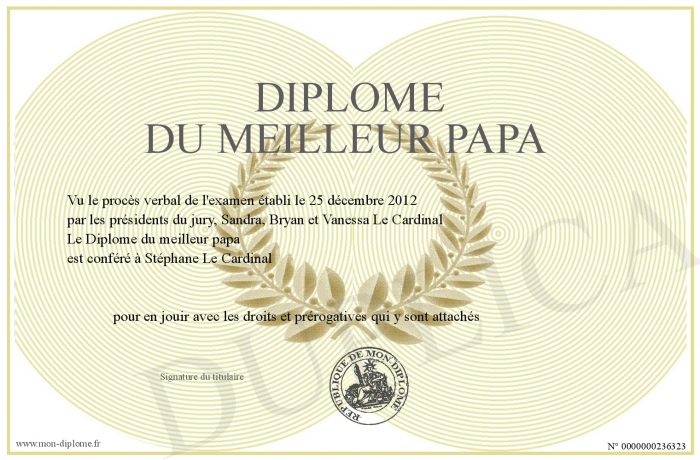 Envoyez par email votre Diplome du meilleur papa personalisé