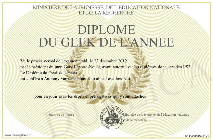 Envoyez par email votre Diplôme du Geek de l'année personalisé