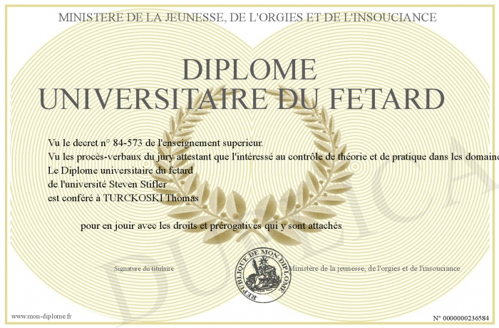 Envoyez par email votre Diplôme universitaire du fetard personalisé
