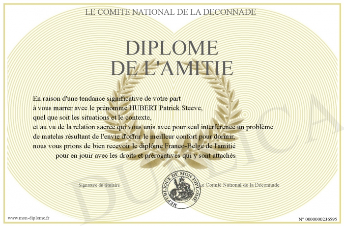 Envoyez par email votre Diplôme de l'amitié personalisé