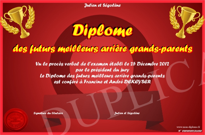 Envoyez par email votre Diplôme des futurs meilleurs arrière grands-parents personalisé